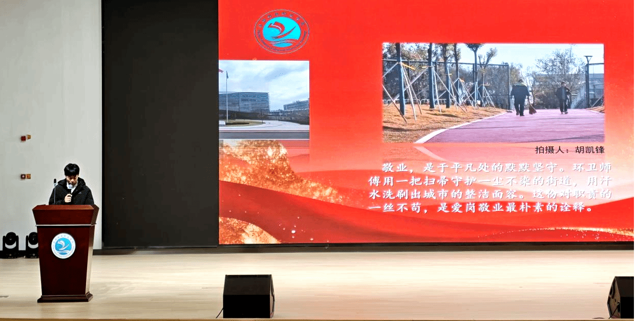 同学们以镜头为媒,用照片讲述校园中践行社会主义核心价值观的生动故事:环卫工人默默清扫的身影、师生有序上下课的文明画面、窗明几净的教学环境……一个个真实场景,不仅展现了校园中的责任与文明,更让“爱国、敬业、诚信、友善”等价值理念,从纸面文字走向生动现实,在日复一日的平凡中生根、发芽、生长,引发全场强烈共鸣。