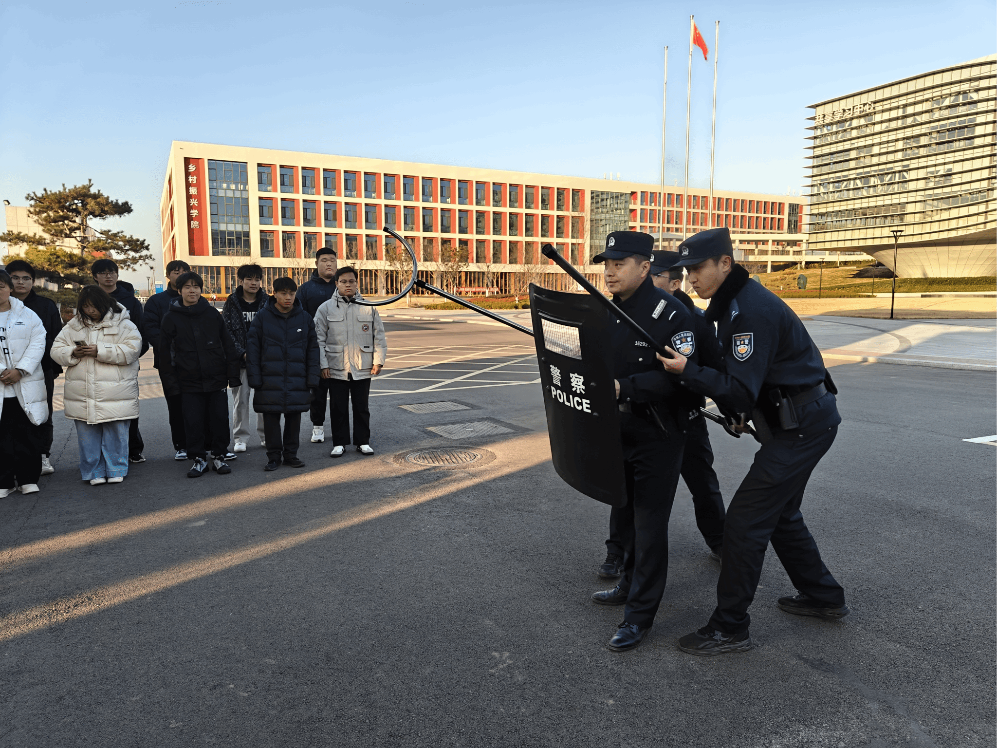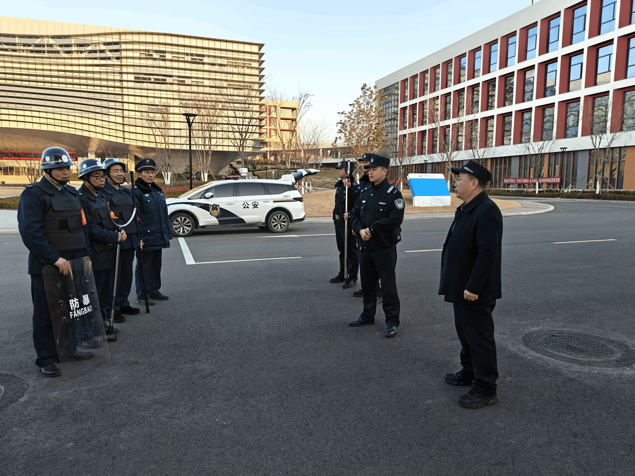 为切实强化校园安全防线,全面落实“最小应急单元”快速响应处突机制,提升校园应急处置实战能力,12月17日,安全保卫处联合潮河派出所、驻校警务室组织开展“最小应急单元”演练活动。