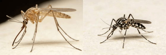 (左图为淡色库蚊,右图为白纹伊蚊)