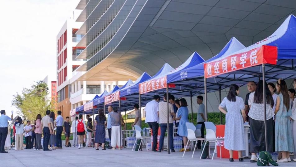 8月12日上午8:00,县教体局师生一行抵达学校,体验活动随即启动。师生们按照预开学流程,依次完成报到登记、领取校园一卡通等环节,随后参观了学院南区宿舍、龙山餐厅,以及北区的体育场、实训基地、图书馆、大学生活动中心等场所。
