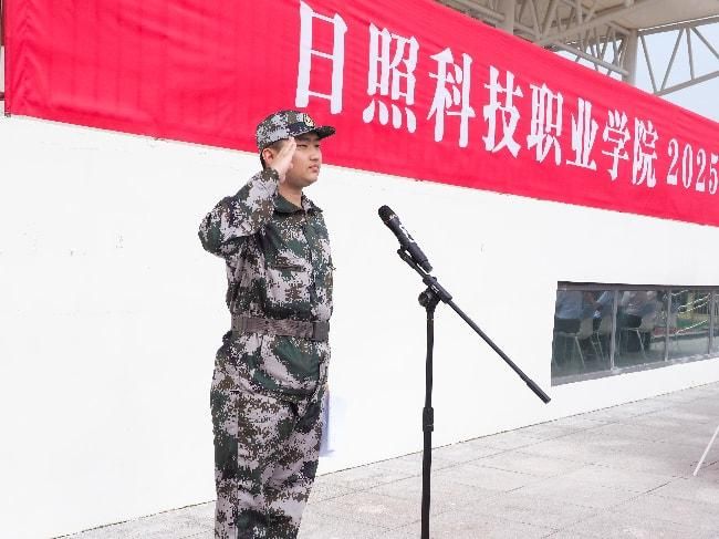迷彩戎装,英姿飒爽。9月3日上午8时,日照科技职业学院2025级学生军训动员大会在学院体育场隆重举行。学院党委书记郭辰夫、县武装部参谋赵文磊、院领导班子成员及相关职能部门负责人、全体教官、各学院辅导员、班主任及全体2025级新生参加大会。学院总督学王建良主持本次军训动员大会。