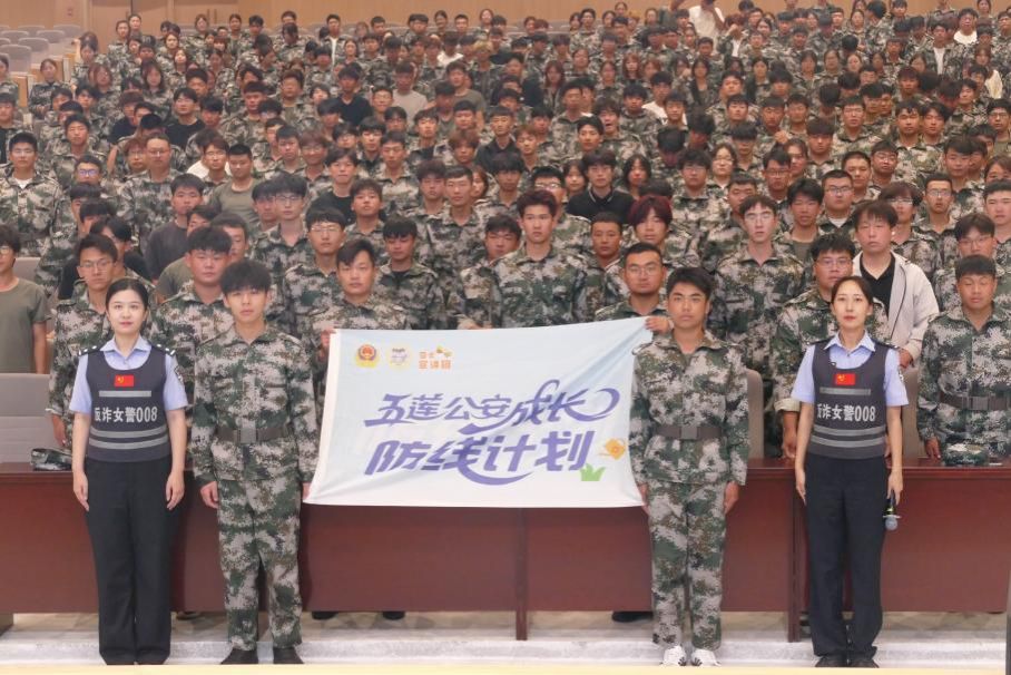 9月8日与9日下午,为提升2025级新生法制观念和安全防范意识,助力新生更好适应大学生活,根据日照科技职业学院2025级军训计划,特举办新生入学法制教育讲座。本次讲座由五莲县公安局反诈女警008宣讲团的张瑜、于瑶警官担任主讲,安全保卫处处长安丰超主持。