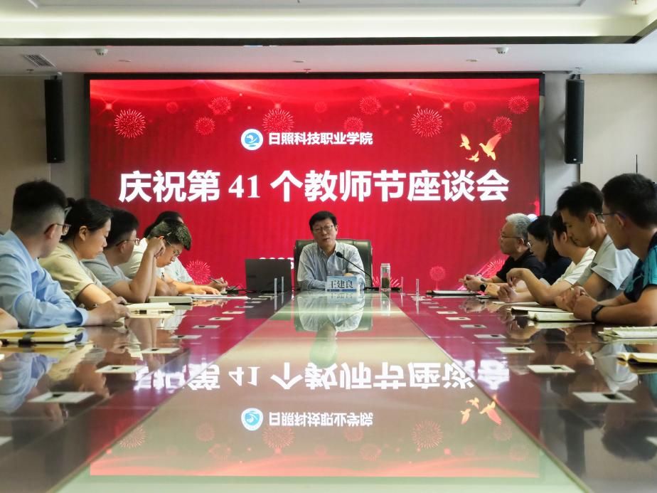 秋韵荡漾,硕果飘香。在第41个教师节来临之际,为弘扬尊师重教的优良传统,倾听教师心声,凝聚发展合力,9月10日上午9时,日照科技职业学院在共享学习中心行政会议室隆重举行教师节座谈会。学院总督学王建良主持会议。