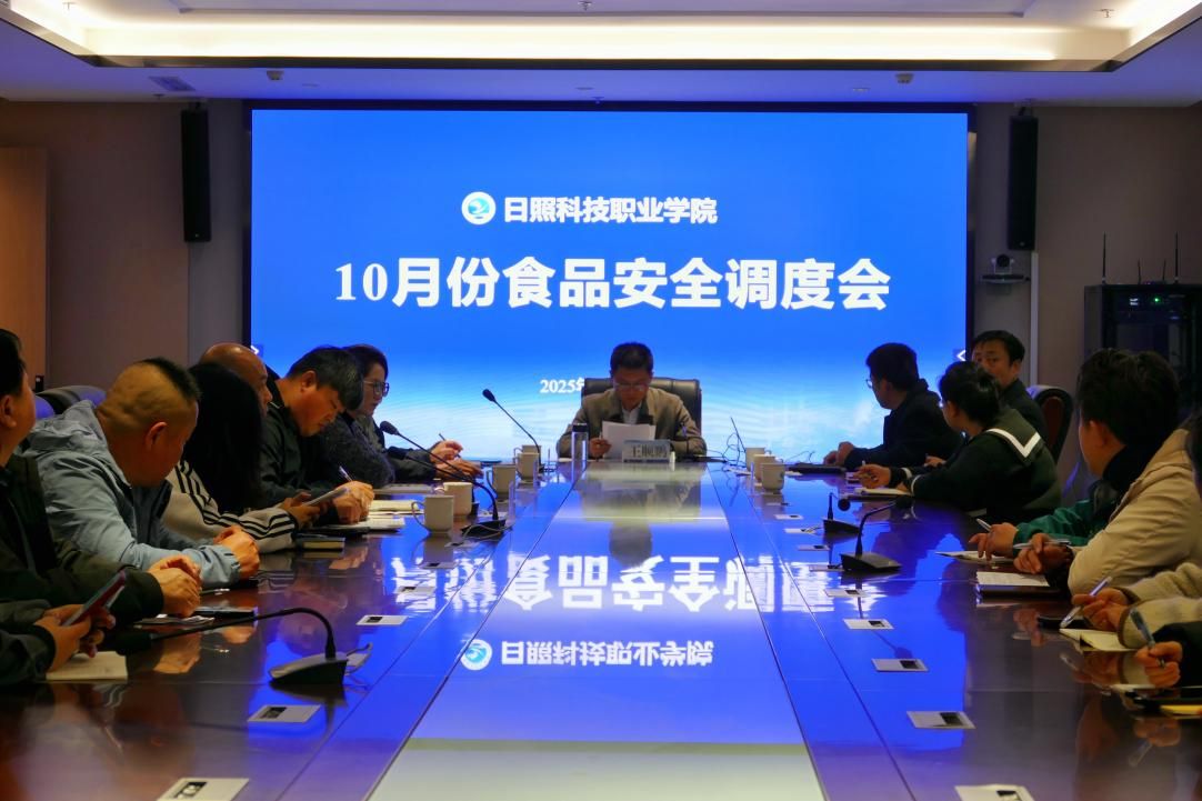 为持续筑牢校园食品安全防线,切实保障全校师生饮食健康与生命安全,10月31日,日照科技职业学院召开10月份食品安全工作调度会议。院长助理王顺鹏主持会议,总务处、安保处、学工处、纪检监察处等相关职能部门负责人,餐饮劳务服务单位负责人、食品安全员以及各原材料供应商,校内涉食品商业业态负责人参会。。