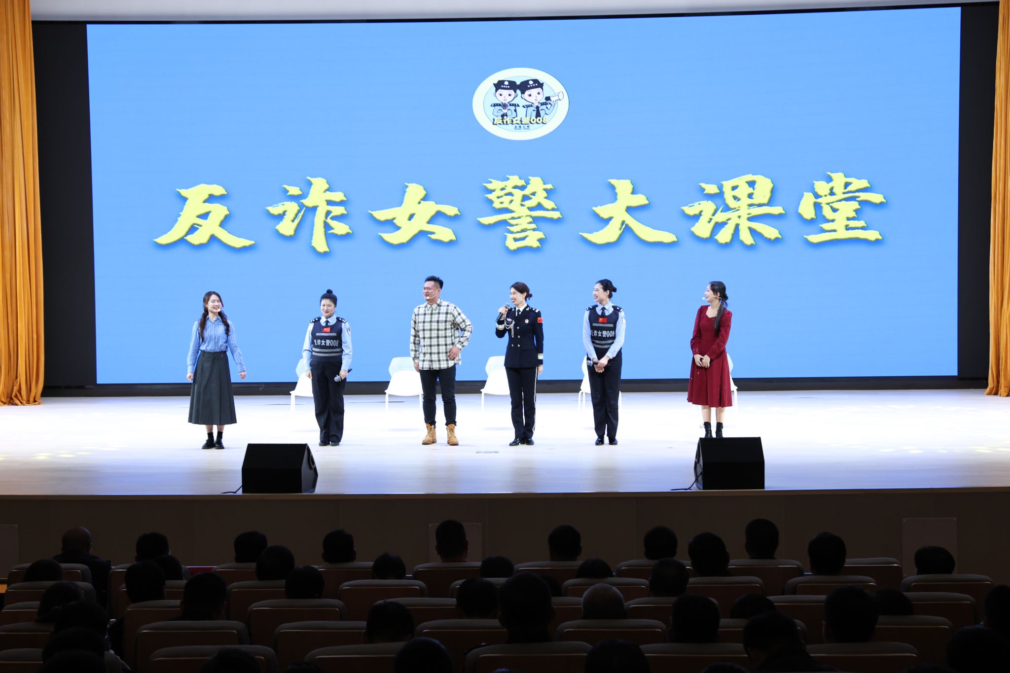 活动在反诈表演唱《擦亮你的眼》中正式拉开帷幕,朗朗上口的歌词搭配演员们活力满满的演绎,迅速点燃现场氛围,让观众在悦耳旋律中初步感知反诈的重要性。茂腔小品《天降大“诈”蟹》以真实诈骗案例为创作蓝本,巧妙融入地方茂腔特色与方言表达,诙谐幽默的表演背后,深刻揭露了各类新型诈骗的套路与陷阱,让观众在欢声笑语中认清诈骗本质;情景剧《反诈女警大课堂》通过场景还原,直观呈现了日常生活中易遭遇的诈骗场景及应对技巧;表演唱《文明在哪里》则聚焦交通安全主题,将文明出行知识融入优美旋律,引导大家树立安全出行意识。互动问答环节中,主持人抛出的安全知识问题引发全场踊跃参与,大家积极举手、争相作答,在轻松愉悦的氛围中巩固了所学知识。