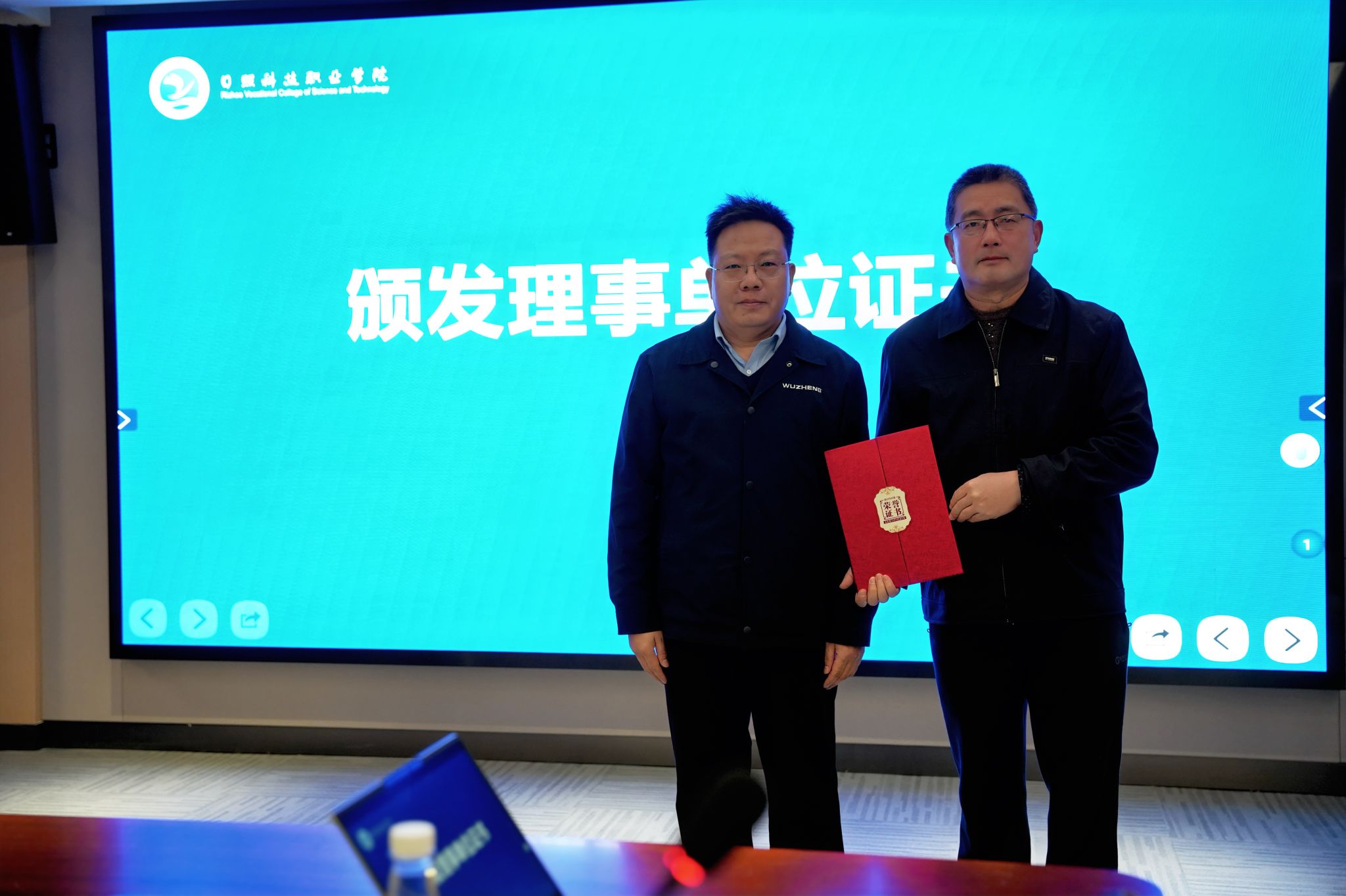 在颁发证书环节,校领导与李传伟共同为副理事长单位、理事单位代表颁发了证书,标志着共同体组织架构正式确立,各方合作进入实质性阶段。