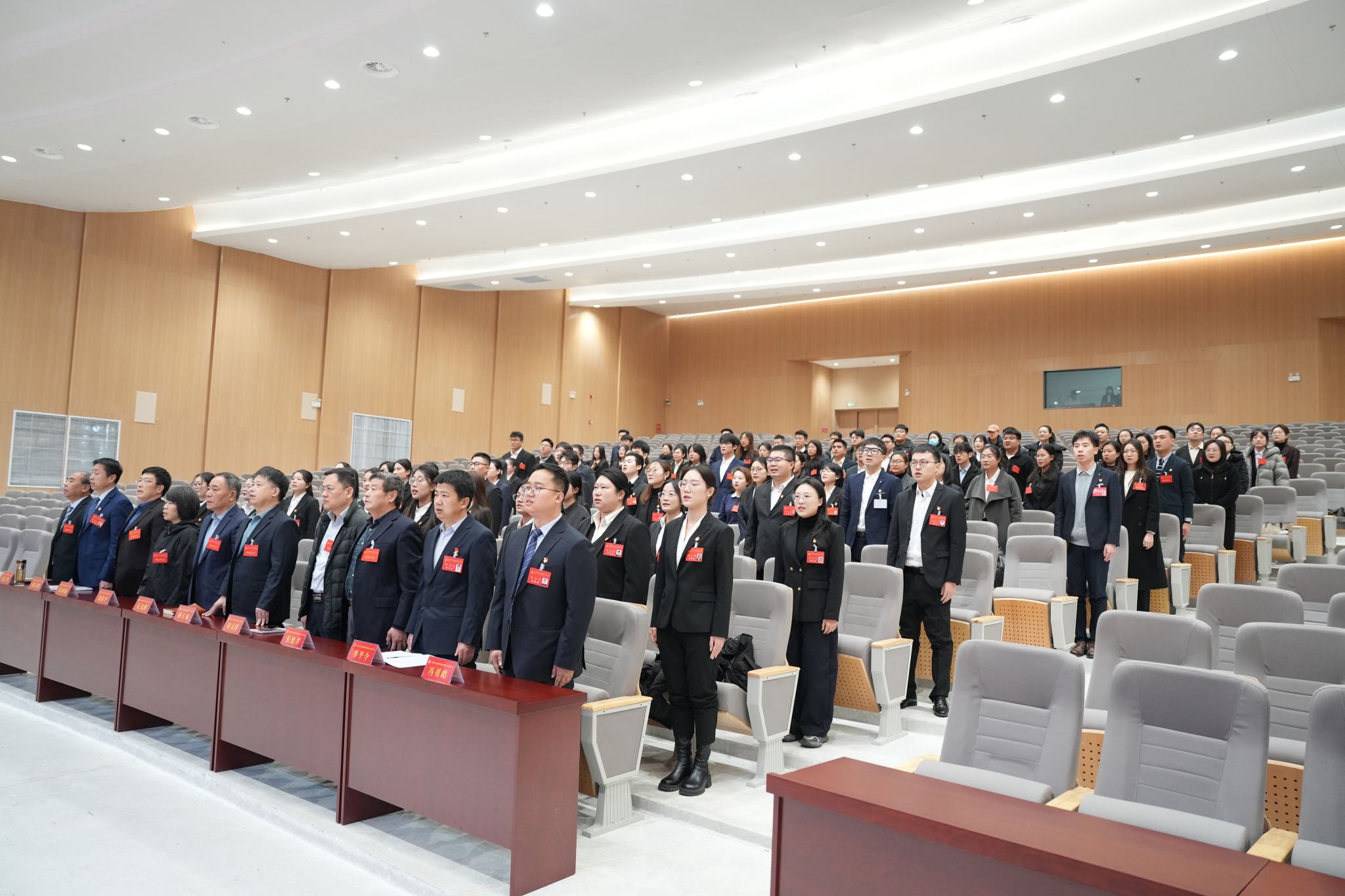 上午8时30分,会议开始。全场人员起立,齐唱《中华人民共和国国歌》。