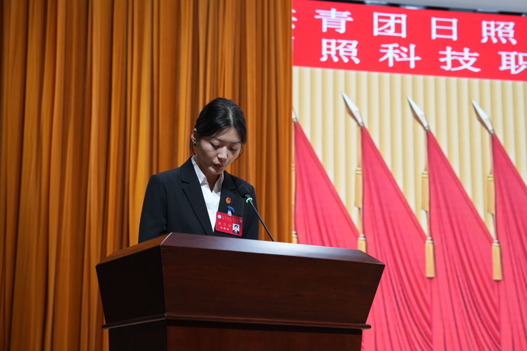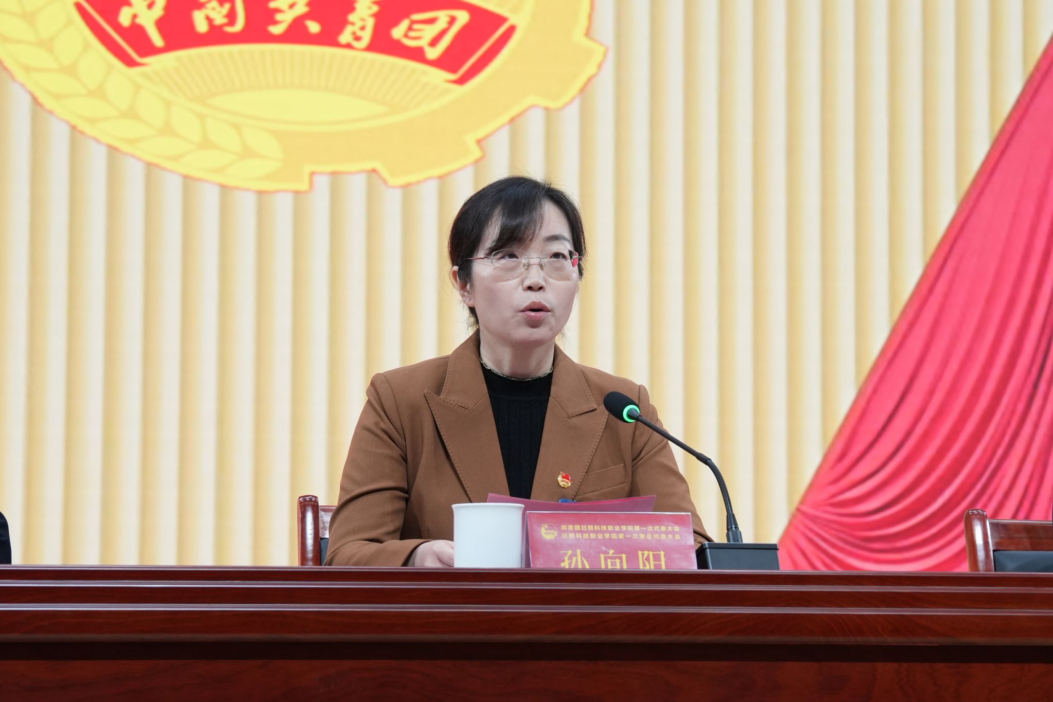 孙向阳代表上级团组织致辞,对大会的召开表示热烈祝贺,并对我校共青团工作取得的成绩表示认可。她希望学校共青团以此次大会为契机,进一步深化改革,强化思想政治引领,夯实基层组织建设,提升服务青年效能。