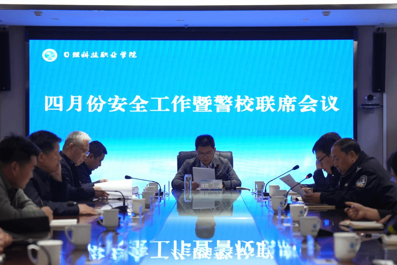 为筑牢校园安全防线,压实安全管理责任,深化警校协同联动,4月9日,日照科技职业学院召开四月份安全工作暨警校联席会议。会议由学院党委委员、院长助理王顺鹏主持,各二级单位负责人及警务室驻校民警参会。