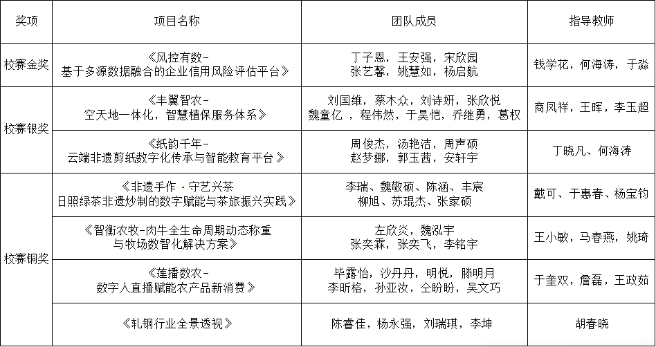 经过激烈角逐与专业评审,本次校赛共评选出金奖1项、银奖2项、铜奖4项。与会领导、专家为获奖团队颁奖并合影留念,现场氛围热烈昂扬。