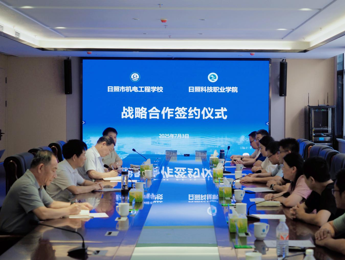 7月3日,日照科技职业学院与日照市机电工程学校战略合作签约仪式在共享学习中心四楼行政会议室隆重举行。日照市机电工程学校校长岳超磊、副校长苏清照,日照科技职业学院院长李世昌、学生工作处长孙玉琢、招生就业处长孔凡辉,以及两校相关职能部门、教学单位负责人参加签约仪式。仪式由日照科技职业学院副院长崔太国主持。