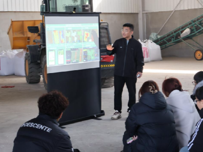 随后,学生们观看了五征集团现代农业装备的宣传视频,并通过农场搭建的展示平台,进一步了解了智能农机在农业种植全流程中的创新应用。在农机展示区,意大利知名农机制造商马斯奇奥(Maschio)的技术专家与来自山东理工大学的教授共同为学生们讲解了约翰迪尔、纽荷兰及五征等品牌的拖拉机与播种机的技术特点与性能优势。通过对比国内外先进农机的设计理念与应用场景,同学们对智能农机的技术发展现状与趋势有了更全面的认识。