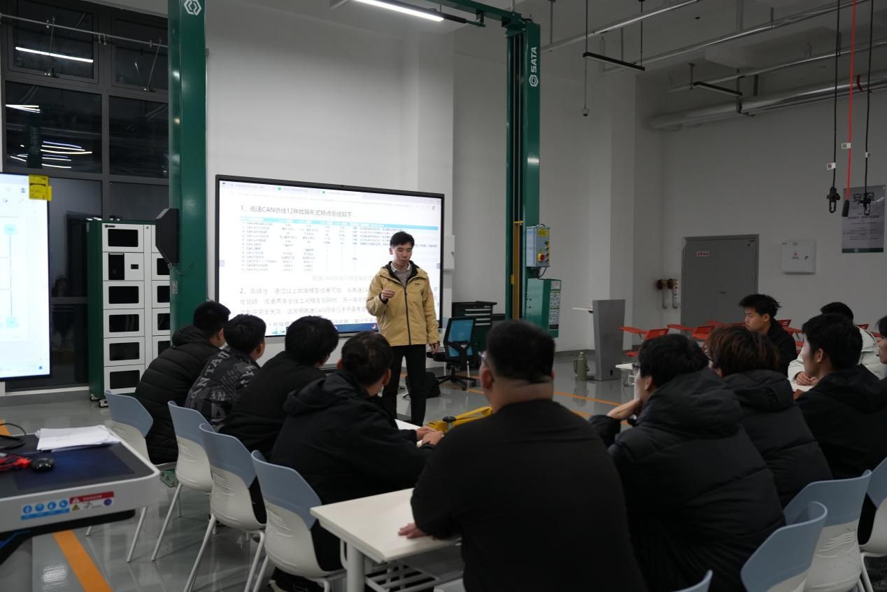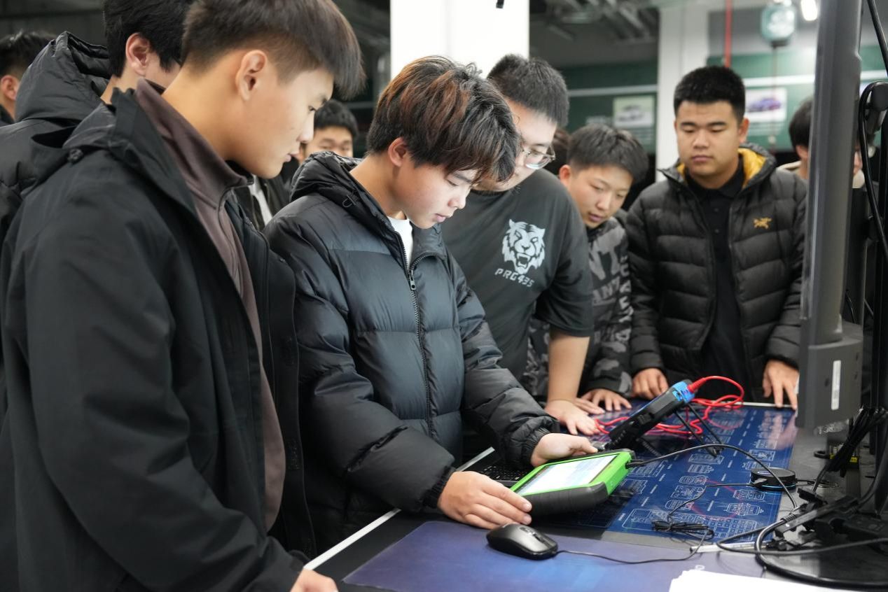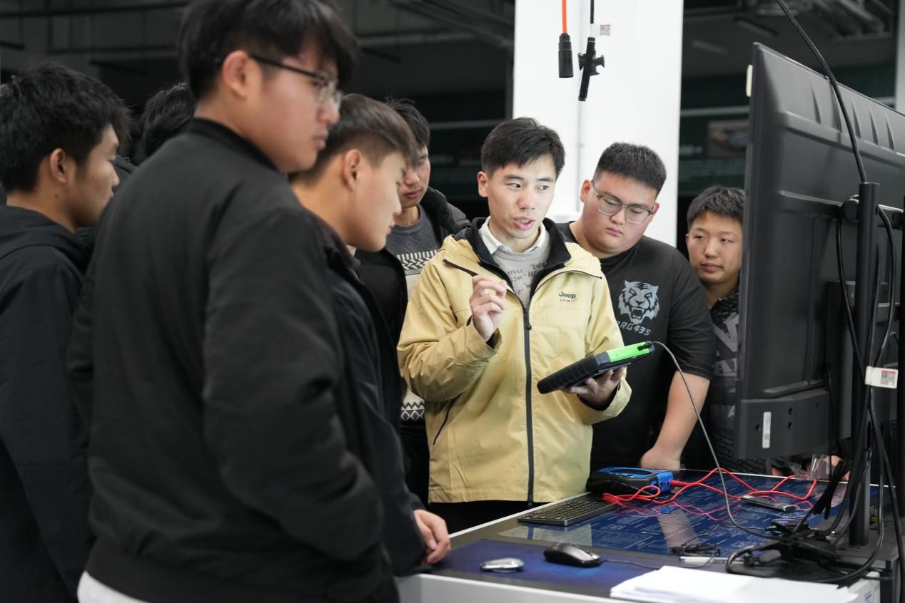 集训队自组建以来,始终以“实践激发兴趣,技能提升自我”为核心,为平衡备赛进度与日常课程,车辆工程学院将集训安排在学生课余时段。从基础仪表仪器的规范操作教学,到复杂线路故障的分步排查演示,再到整车通讯线路多场景故障的深度剖析,肖斌总能用扎实的技术功底拆解难点,让学生在动手实践中逐步点燃对车辆专业的热爱,夯实专业技能根基。
