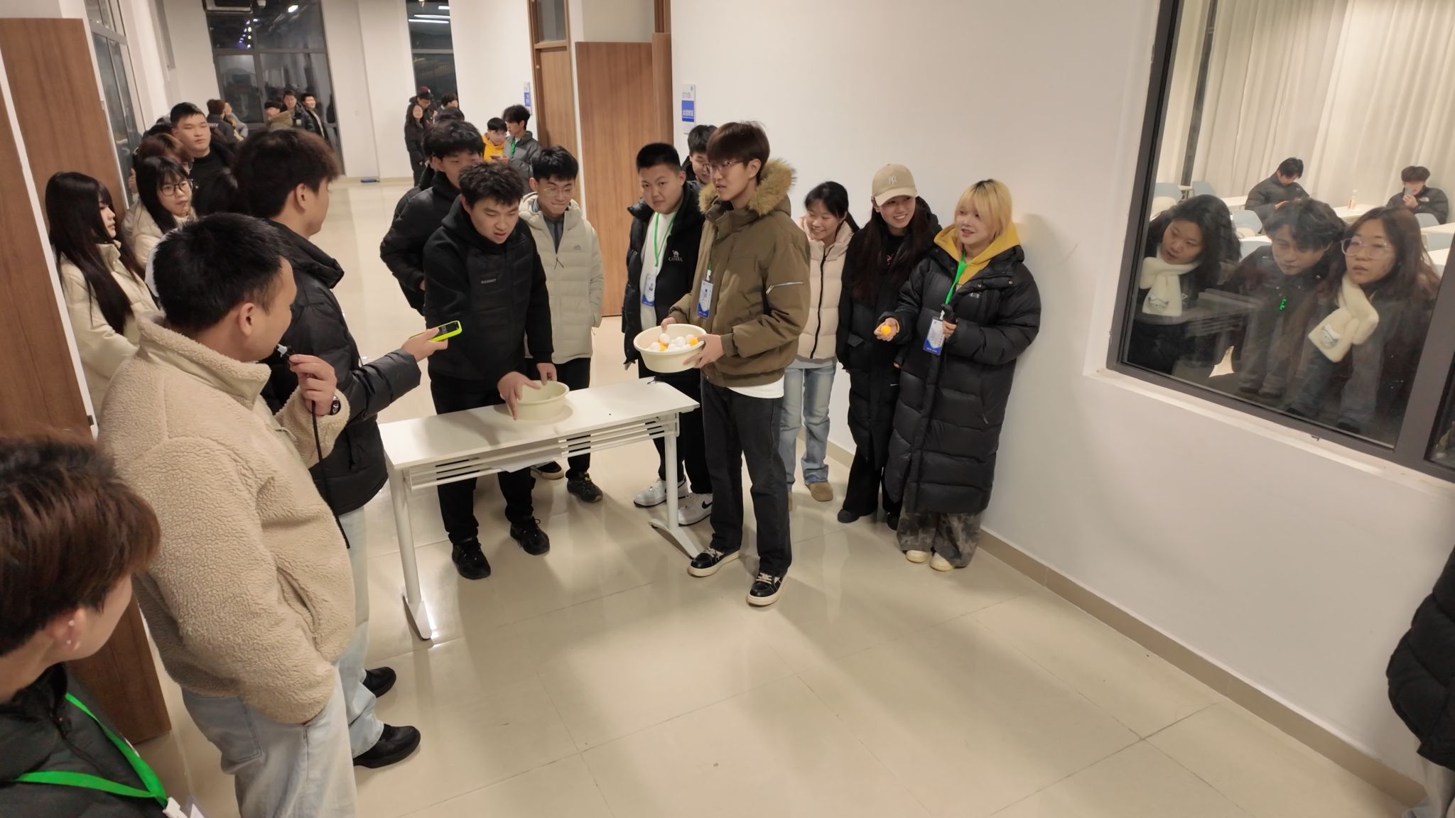 为丰富学生课余生活,缓解学业压力,增强集体凝聚力,信息工程学院于1月8日、12日在七号楼一楼走廊举办走廊趣味运动会。这场以乒乓球为主题的趣味赛分两批开展,1月8日计算机网络1-7班率先开赛,1月12日计算机网络8-10班与物联网1-4班接续比拼,全院学子在七号楼一楼走廊上演了一场欢乐竞技。