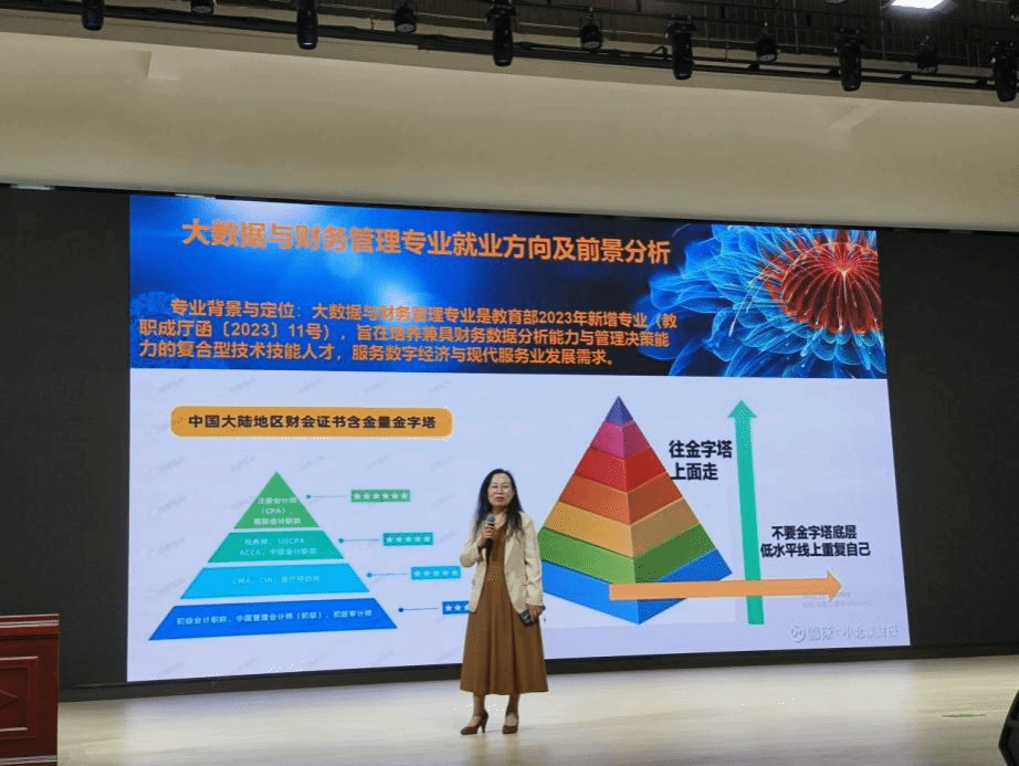 讲座伊始,肖丽院长围绕学院“以学生为中心,以就业为导向,以服务区域经济支柱产业校企合作、产教融合为双轮驱动”的人才培养理念,清晰阐述了学院的人才培养目标——立足数字经济时代,聚焦数字化财务与智慧化物流领域,打造“产教融合、数字赋能”的区域人才培养高地,全力培养具备数字化应用技术和实践能力的复合型财务管理人才与现代物流管理应用型人才。