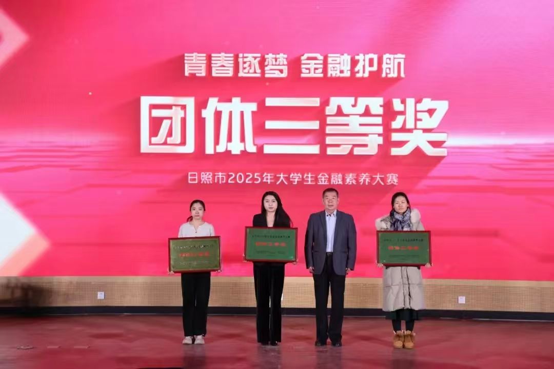 近日,由日照市多部门联合主办的“青春逐梦,金融护航”2025年大学生金融素养大赛圆满落幕。本次大赛吸引了全市十所高校的参赛队伍同台竞技,日照科技职业学院参赛队伍凭借扎实的专业素养和出色的现场发挥,最终斩获团体三等奖,并取得个人三等奖一项、优胜奖两项的优异成绩。